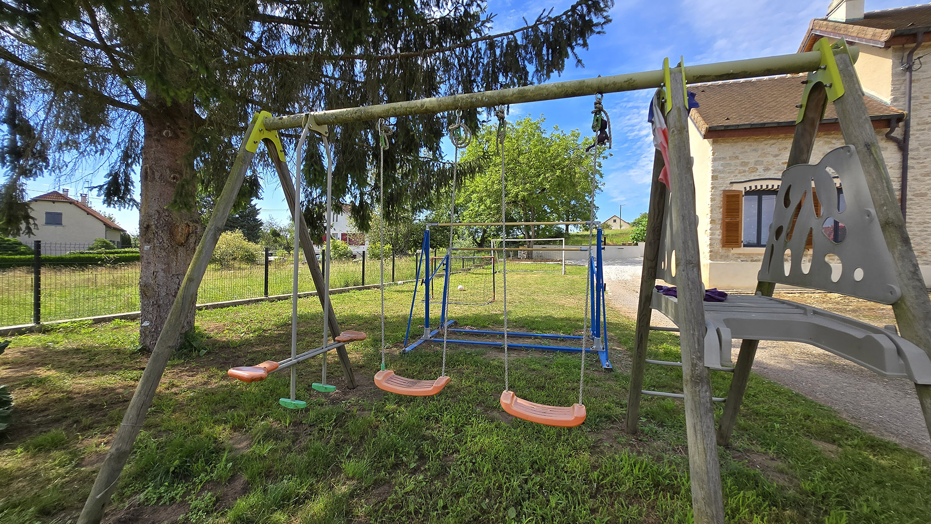 Renovated house with character close to the Saône, the port of Savoyeux and the Voie Bleue. Enjoy an unforgettable summer in a natural setting, cool off in the swimming pool, relax in the jacuzzi and make the most of all the comforts in this air-conditioned accommodation. And there's no shortage of leisure activities, with a petanque court and mini football pitch to delight young and old alike.